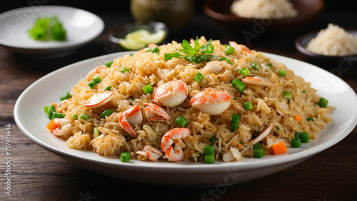 crab, fried, rice, vegetable, egg, lunch, plate, dish, healthy, meal, thai, onion, white, tasty, meat, chinese, cookery, seafood, chicken, cucumber, herb, indian, oil, slice, warm, tomatoes, salad, vegan, fresh, nourishment, pepper, eatery, sauce, ingredient, spicey, spoon, bowl, traditional, style
