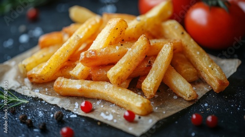 Irresistible Crispy Golden French Fries Deliciously Seasoned Snack with Herbs and Ketchup - Perfectly Cooked Comfort Food Photography