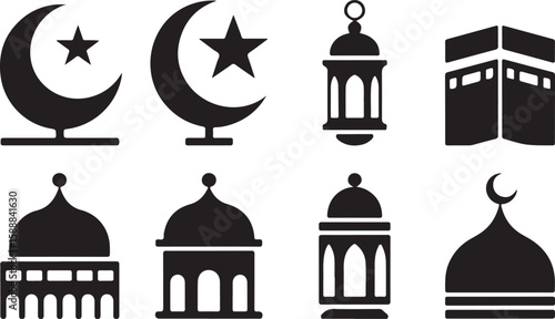 Islamic Lanterns, Crescent Stars, Mosques, and Religious Symbols - Traditional Spiritual and Architectural Designs