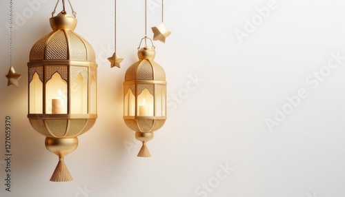 Islamic Lanterns Hanging Against a Minimalist White Background