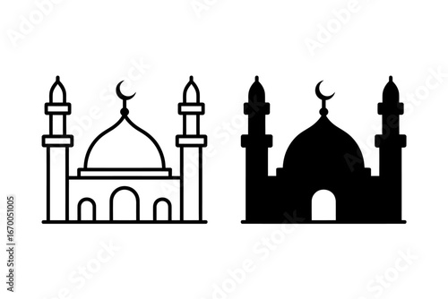Islamic Mosque Icon Set A Symbol of Faith and Worship in Clean Line Art and Silhouette Styles