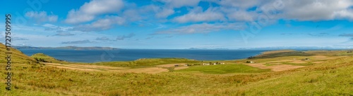Isle of Skye – 100-Megapixel-Panoramaaufnahme bei Linicro mit Blick über das blaue Meer zu den Äußeren Hybriden, aufgenommen im August 2025 bei sonnigem Wetter und klarer Sicht