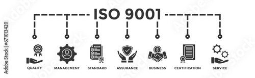ISO 9001 banner web icon vector illustration concept with icon of quality, management, standard, assurance, business, certification and service