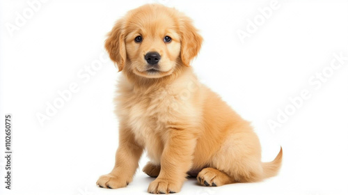 isolated, golden retriever, dog, cute, pet, animal, puppy, canino, sitting, studio, adorable, mammal, fur, white background