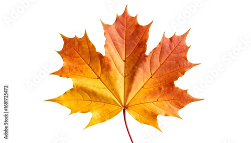 Isolated autumn maple leaf featuring warm tones against a pure white background