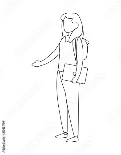 woman, avatar, laptop, bag, vector, girl, female, person, people, human, pretty, beauty, attractive, portrait, cute, lifestyle, fashion, model, positive, fun, expression, natural, student, adult, graphic, conceptual, high, quality, illustration, design, element, shape, image, clip art