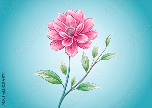 Isolated Blooming Pink Spring Flower Silhouette on Light Blue Background - Marker Art Illustration, Vector Design, Spraypaint Style, Floral Wallpaper
