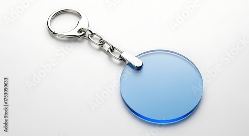 keychain, blue, acrylic, round, blank, product, isolated, white, background, minimalist, object, accessory, design, branding, template, presentation, advertising, promotion, gift, merchandise, keyring, chain, silver, metal, circle, shape, transparent, clear, light, shadow, studio, clean, simple, modern, elegant, stylish, commercial, marketing, promotional