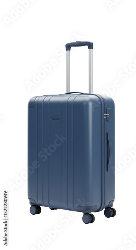 Isolated Blue Suitcase Luggage with Roller Handle and Wheeled Design