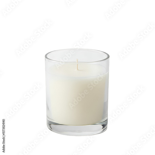 Isolated Candle in Glass Container With White Wax on Transparent Background