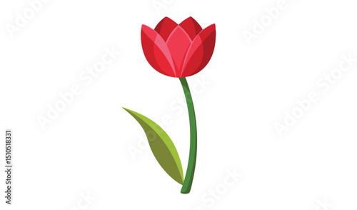 tulip, red, flower, green, stem, leaf, floral, botany, nature, blossom, spring, single, plant, botanical, clip art, cut-out, bloom, flora, wildflower, vibrant, gardening, natural, springtime, grow, art, cut-out