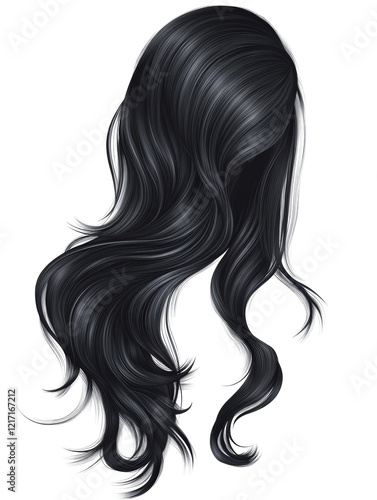 hair, coiffure, dark, black, wavy, curly, long, woman, female, girl, beauty, fashion, style, elegant, glamour, realistic, illustration, isolated, design, graphic, element, clip art, art, artwork, drawing, vignetting, rendering, texture, detail, surface, shiny, glossy, smooth, volume, portrait, model, cosmetic, care
