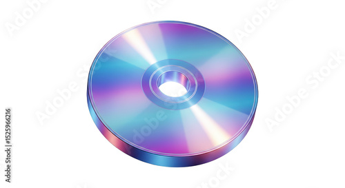 Isolated digital compact disc with colorful light reflection on black background