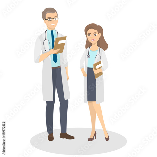 doctor, cartoon, isolated, illustration, couple, female, doctor, white, uniform, staff, male, hospital, medic, vector, team, medicals, health, care, occupation, stethoscope, specialist, cute, flat, design, 2, young, happy, modern, fresh, human, nurse, clean, smiling, holding, job, simple, treatment, pen, coat, clinic, folder, insurance, make well, physician, disease, practitioner, consultation, cartoon, people
