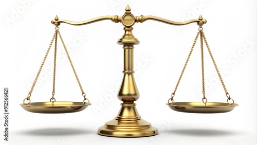 Isolated fairness scales of justice on a clean white background, symbolizing balance, equality, and impartiality in law and morality, with soft shadows for depth.