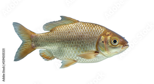 Isolated Freshwater Goldfish with Detailed Scales Swimming in Clear Water