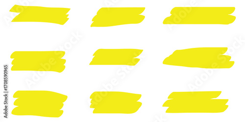 Isolated glowing scribble icon set on white page. Textured doodle sets. Yellow glowing doodle scribble background set on white background. Graphical vector icon scribble set on white page. EPS 10.