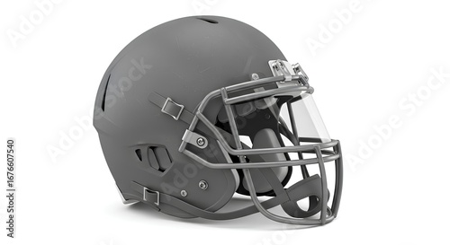 Isolated Gray Football Helmet on White Background Sports Equipment Concept