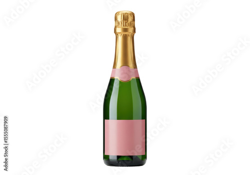 Isolated Green Champagne Bottle with Golden Cap and Pink Label