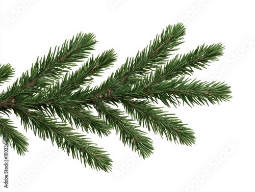 Isolated Green Christmas Tree Branch on White Background
