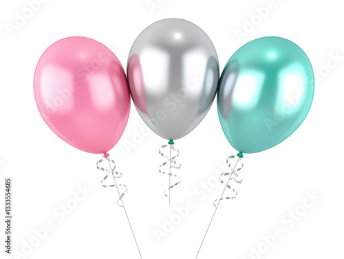 Isolated Group of Three Shiny Pastel Balloons with Curled Ribbon