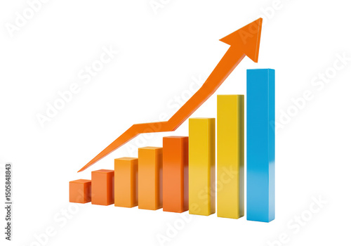 bar chart, graph, chart, growth, increase, arrow, trend, business, finance, diagram, statistic, datum, analysis, upward, success, progress, marketing, investment, economic, report, isolated, infographic, presentation, illustration, orange, blue, yellow, colours, financial, market, profit, development, rise, improvement, performance, positive