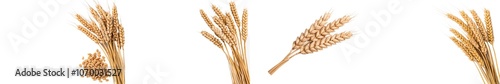 Isolated horizontal wheat ears on a white background. Depth of field full. Stock photo