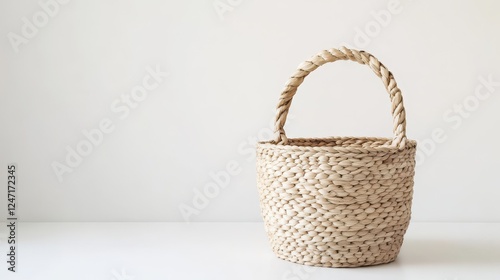 Isolated image of a stylish storage basket on a white surface, great for promoting home organization products.