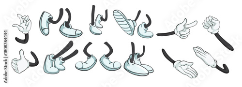 Isolated Legs and Arms in Cartoon Comic Retro Style. Stick Feet