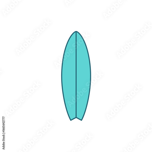 Isolated light blue surfboard on a plain white background with simple outlined design. Concept for water sport branding, summer vacation vibes and coastal themed decoration