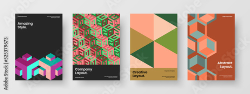 Isolated magazine cover A4 vector design concept set. Unique geometric shapes placard illustration composition.