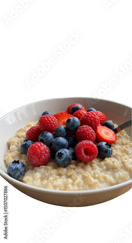 Isolated Oatmeal with Fresh Berries on Transparent Background Food Still