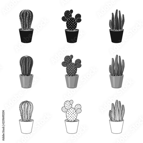 Isolated object of cactus and pot sign. Collection of cactus and cacti vector icon for stock.