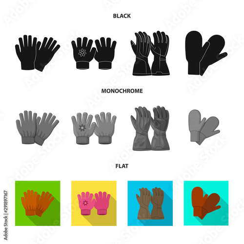 Isolated object of glove and winter logo. Collection of glove and equipment stock vector illustration.