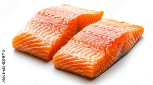 Isolated on white background, two fresh raw salmon steaks in full depth of field