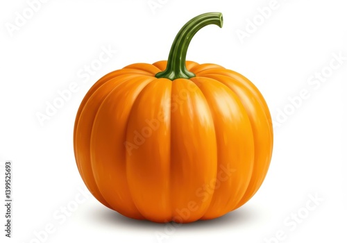 pumpkin, orange, stem, green, white, background, isolated, studio, lighting, soft, vegetable, autumn, fall, round, seasonal, halloween, gourd, crop, food, healthy, ripe, vibrant, produce, plant, with