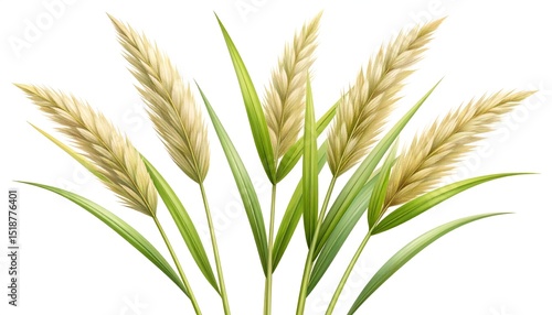 Isolated ornamental grass plant on pure white background, high-resolution botanical illustration style, soft lighting