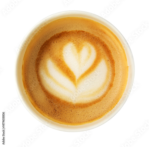 Isolated paper latte cup with heart and flower. Latte art isolated on transparent background