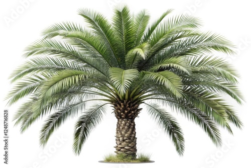 Isolated Phoenix palm tree with pinnate leaves, showcasing high detail against a white background. Clean clipping path included.