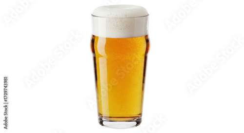 Isolated pint of beer with a creamy head sits elegantly, ready for immediate consumption.