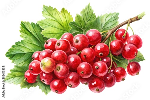 Isolated red currant. Fresh whole Black currant with leaf on a branch isolated on white background with clipping path
