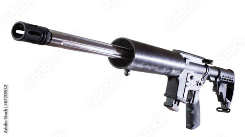 rifle, firearm, gun, weapon, muzzle, barrel, polymer, metal, trigger, grip, stock, isolated, white, black, grey, grey, mag