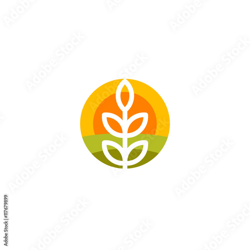 Isolated round shape abstract agricultural vector logo. Wheat ear silhouette logotype. Farm icon. Harvesting illustration. Bakery emblem.