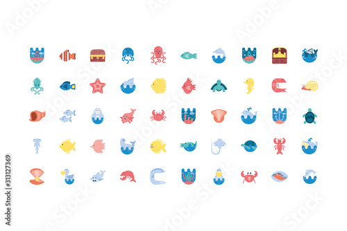 Isolated sea life icon set vector design