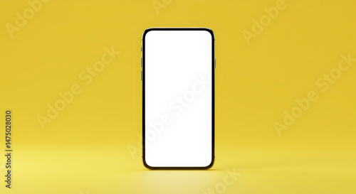 Isolated Smartphone on Yellow Background with Blank White Screen in Studio Environment
