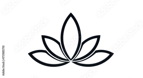 Isolated stylized lotus flower blossom with elegant curving petals and smooth black outline