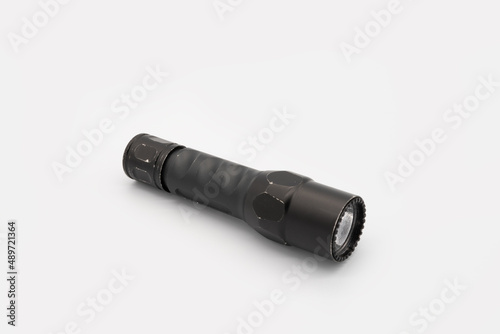 isolated tactical flashlight for a weapon mounting such as gun on white background