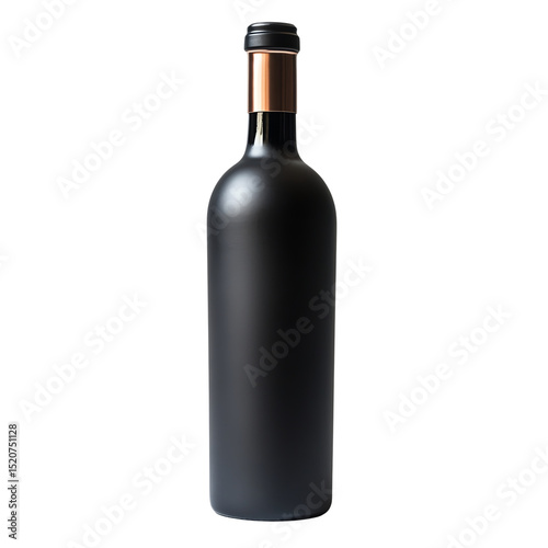 Isolated transparent A sleek black wine bottle with a modern design and copper accents, ideal for promotions. PNG die-cut element for advertising