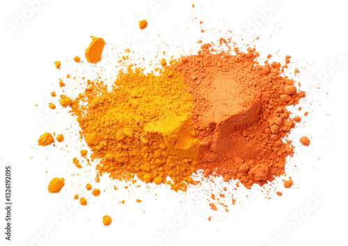 isolated transparent Background. Bright orange and yellow spice powders create vibrant, colorful heap