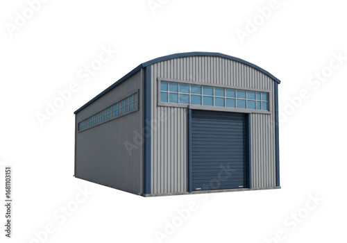 warehouse, building, industrial, storage, construction, steel, facility, real estate, commercial, architecture, exterior, property, urban, design, structure, distribution, delivery, industry, logistic, manufacturing, transport, shipping, business, office, cargo, retail, trade, isolated, grey, blue, metal, door, window, modern, factory, shed, workspace, cut-out, clip path